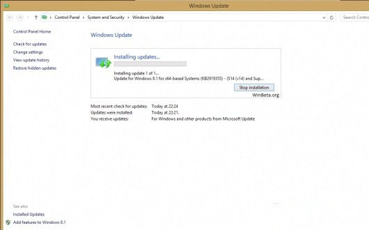 如果幸运的话,你应该能够看到“Update for Windows 8.1 for x64-based Systems (KB2919442) – (S14 Prerequisite v01.0008)”更新了。