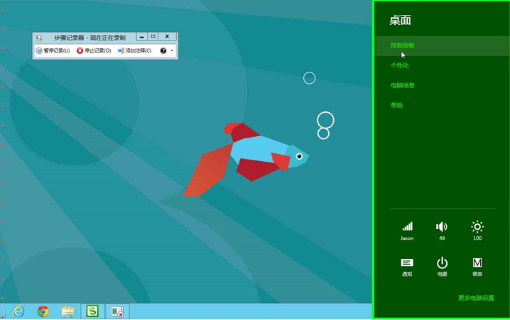1、鼠标移到屏幕右下角,右方会出现如图所示选项;