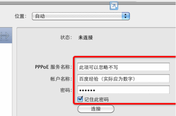 6.然后写好服务名称(可以忽略不写),填好你的宽带账号和密码就行了,如果不知道你的宽带账号和密码了, 可以看看你原来的拨号记录,实在找不到,可以联系网络运营商。