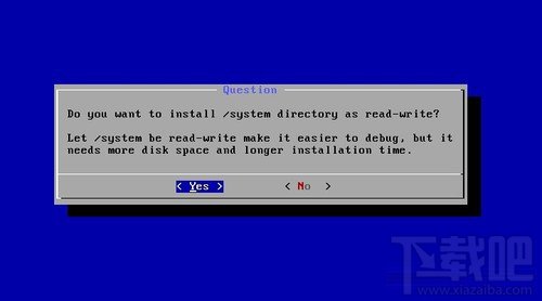 4.设置系统文件夹为可读写权限,选择【Yes】。适合开发者进行Debug,但会占用一点硬盘空间。如果不需要可以选择【No】。
