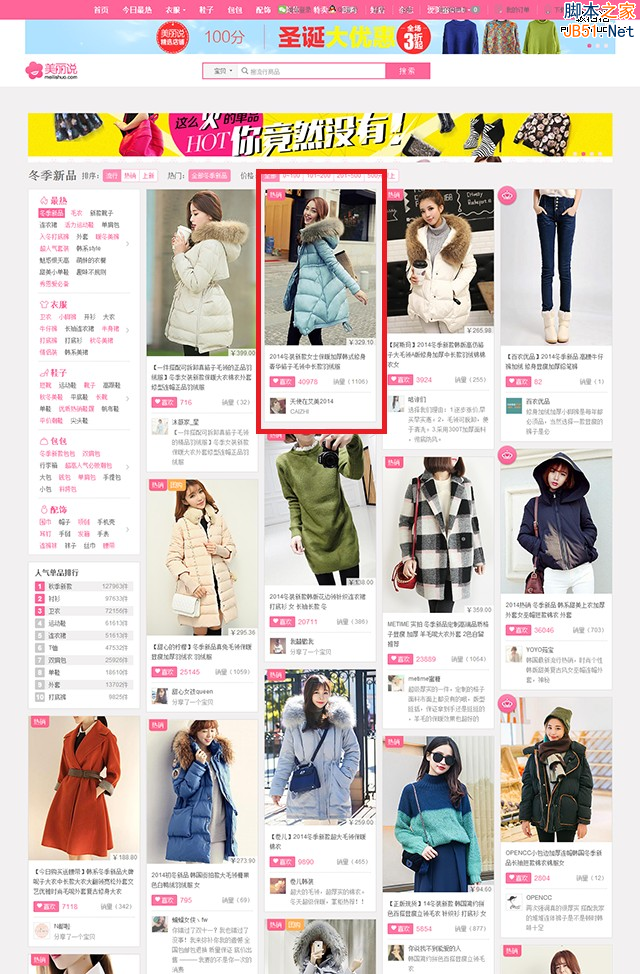 美丽说是一个偏向时尚年轻化的网站,因此设计师使用了这类人群都能接受的瀑布流展现方法。美丽说的商品列表页的特点在于增加了其他用户的评论模块,这也是人们在网上购物时很注重的部分。