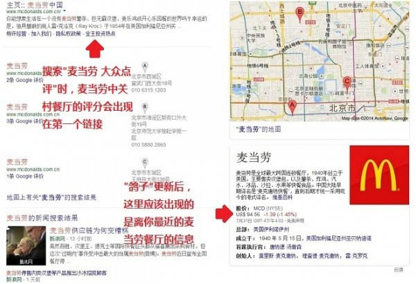 当你仅仅搜索“必胜客”的时候,排在最前面的也不会是必胜客的官网或者 wikipedia 词条,而是附近必胜客餐厅在各种各样生活服务网站上的页面。