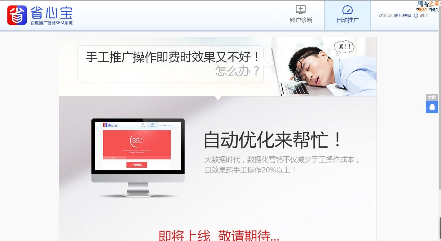 据百度营销推广下级代理渠道商某员工透露,百度推广平台将在最近几日推出“自动竞价”工具,该消息由于来自内部员工,所以高信度非常高,而且从百度推广开放平台"省心宝"的页面来看,百度推广自家出“自动竞价”是早已经准备好了的。