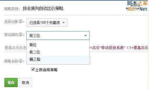 (该图为某第三方自动竞价平台设置截图)