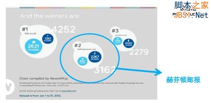 图为新闻网站社交参与度排名(NEWSWHIP从超过5000个英语新闻来源中找出超过100人喜欢,分享或评论过的新闻报道并进行排名的统计结果,赫芬顿位列第二)