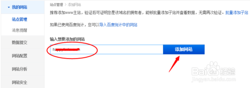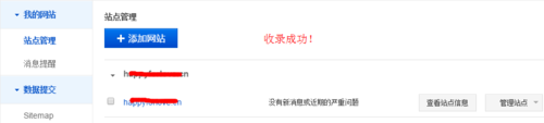 8、返回“站点管理”,网址就被百度添加,如图:
