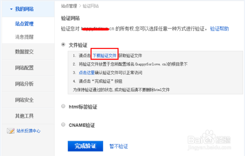 3、验证网站所有权,如图: