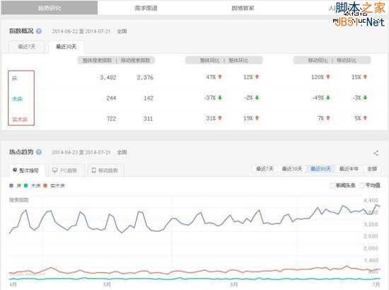 百度是全球最大的中文搜索引擎,我们先通过百度指数看看,和床相关的产品搜索情况如何。