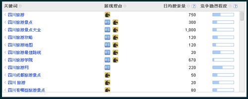 如上图所示:某些关键词每日搜索量较大,相反它的竞争力度却不是那么激烈,经常分析这样的数据会有助于正确的选择关键词。
