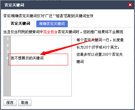 否定关键词设置